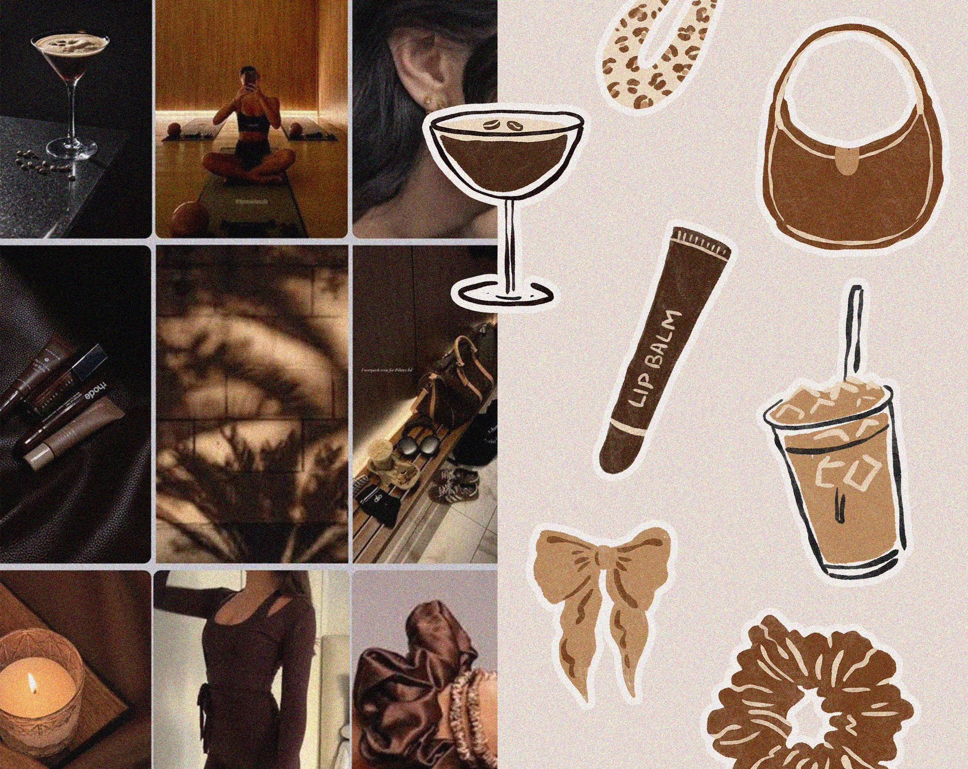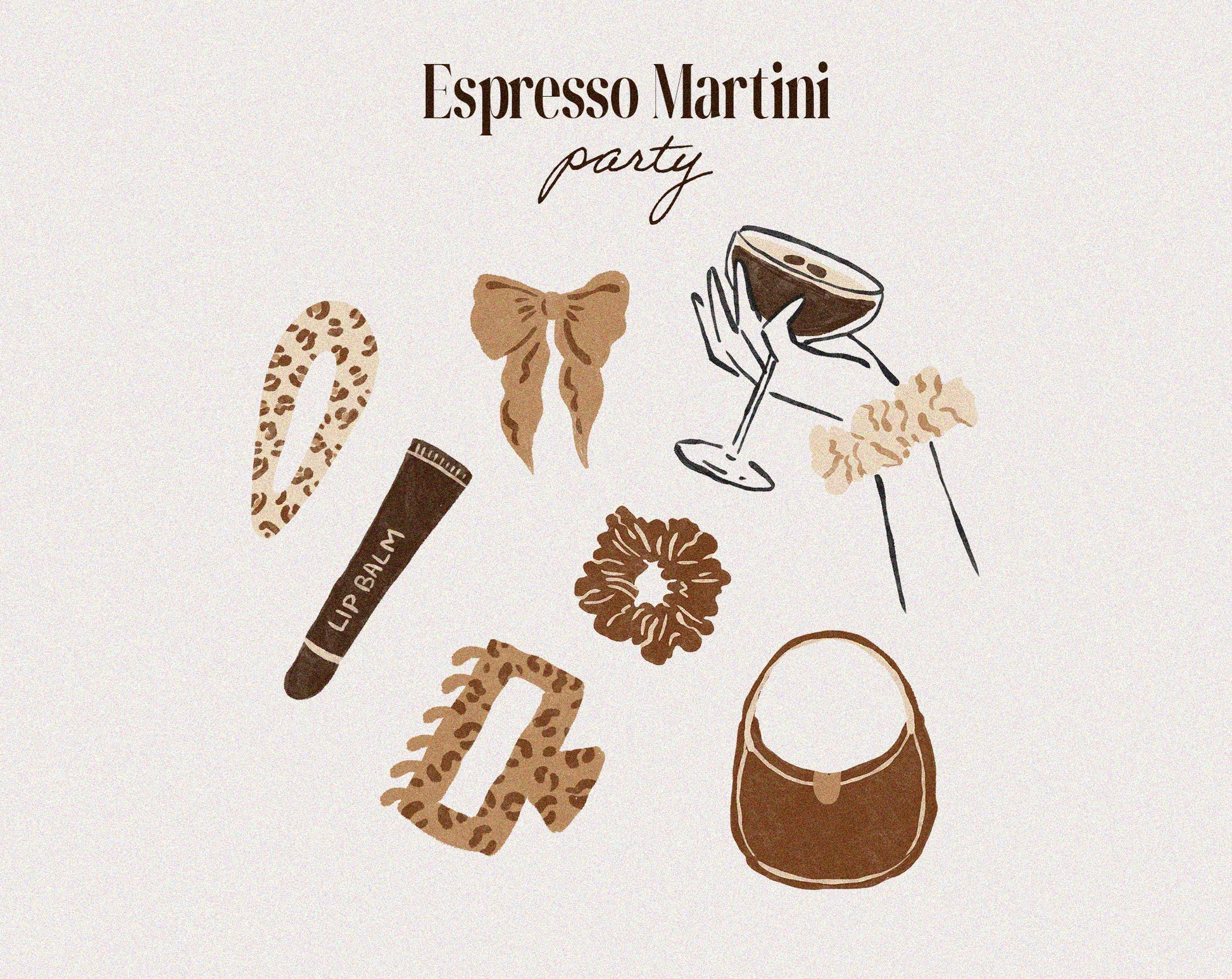 A stylish, cozy clipart collection inspired by espresso martinis, coffee culture, and chic feminine aesthetics. This set features hand-drawn illustrations in warm brown and beige tones with trendy leopard accents and a soft textured look.